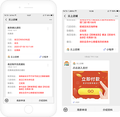 公众号模版消息推送方式向标签会员发放优惠券,全面推送新会员权益(优惠券、积分、余额)消息,累计积分兑礼品兑优惠,店铺减免早知道。