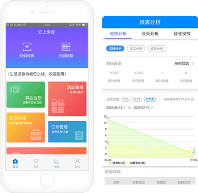 电脑端后台管理系统,可配置满减、满送、折扣等多种营销活动,商家还可以全面了解会员信息,店铺订单等信息同步到电脑端后台,店员业绩一目了然